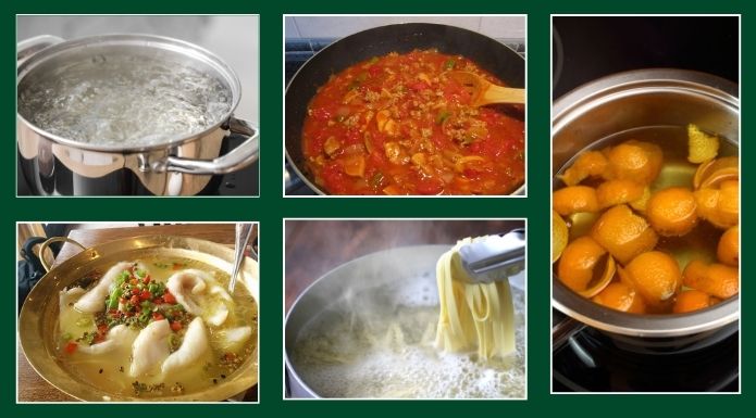Most of us know what it means to boil a food. We do it with dried pasta when we bring water to a rolling boil and put in the pasta. Even if we reduce the heat of the burner to stop the pot from boiling over, we are still boiling the pasta. But, what does it mean to simmer, or to poach?