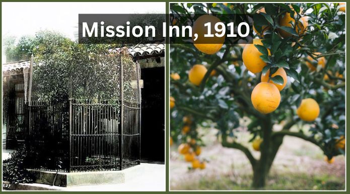 One of the original Riverside trees was transplanted from the Tibbet’s yard to the Mission Inn in 1903. President Theodore Roosevelt, who was staying at the hotel during a tour of the city, was there to dedicate the tree. This tree later died in 1921.