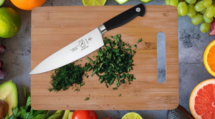 Some cooks may have a hard time adapting to this lightweight feel, and they may not like it. However, in the demonstration, the knife glides through yellow bell peppers just by the slight weight of the knife alone.